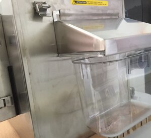 Viene attivato l'elemento riscaldante programmato dal PLC per liquefare il grasso trattenuto (40°C), che viene poi rimosso dal tamburo di scrematura e depositato in un contenitore portatile per il riciclaggio.
